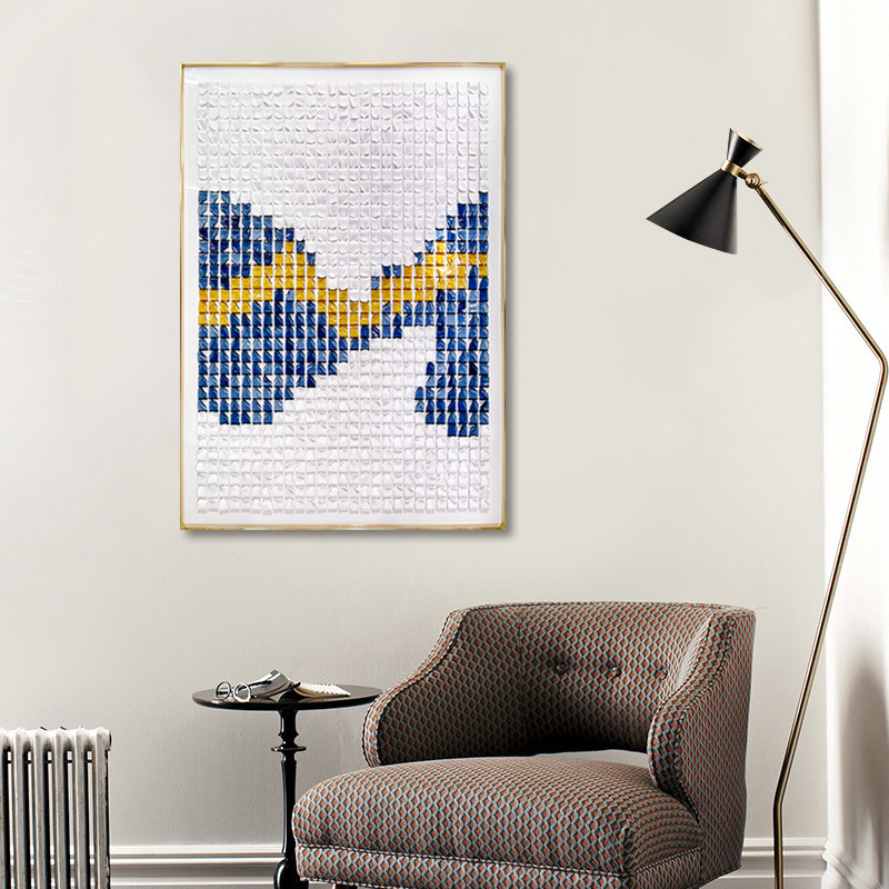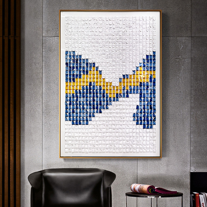 Pintura de mídia mista 3D personalizada Luz luxuosa simples Mural artístico de relevo feito à mão Pintura de parede com método de impressão de 6 cores