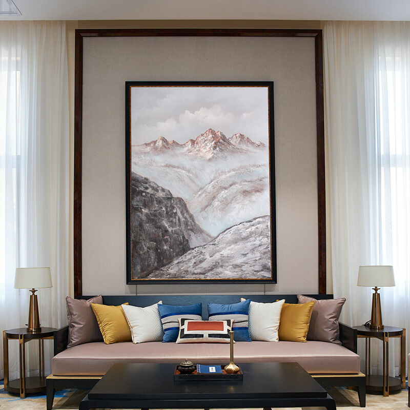 Paisagem pintada à mão para decoração doméstica, perfeita para o fundo da sala de estar